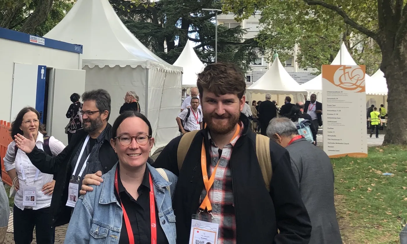 Emma Van Dorp et Elio Jaillet ont tous deux participé à la récente assemblée du Conseil œcuménique des Églises (COE) à Karlsruhe (31 août au 8 septembre). Avant celle-ci, Emma a vécu quatre jours avec 350 jeunes, puis a été déléguée de l’Église évangélique réformée de Suisse à l’assemblée. En plus de sa participation à l’assemblée, Elio a aussi passé une semaine avec 120 jeunes étudiants en théologie œcuménique dans le cadre de l’Institut œcuménique mondial (GETI). Interview.
