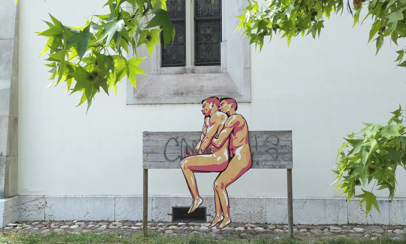 Le dimanche 4 juin à 14h, une artiste lausannoise a affiché à l’extérieur du Temple de Plainpalais deux peintures réalisées en partenariat avec le LAB, dans l'élan de la Geneva Pride 2023, qui avait lieu la semaine suivante. Elles visaient à présenter dans la rue des images de personnes LBGT+, ainsi que le slogan du LAB « Love wins ». La peinture sur l'avenue du Mail a été arrachée et volée le soir-même à 22h45 par 2 personnes en voiture et un piéton. La Police n’a pas pu voir leur identité ou la plaque de la voiture. Si vous avez une piste pour faire avancer l'enquête, écrivez à info@lelab.church.