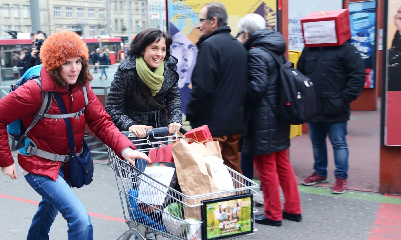 Nous n’offrons pas de divertissement, mais un programme de sensibilisation ludique. Bien sûr, nous avons dû travailler pour cela et payer l’impression des documents distribués. Cependant, notre propos n’est pas de dire qu’il ne faut rien acheter, mais nous voulons sensibiliser les gens sur les habitudes de consommation dans notre société et sur les méthodes de production et de distribution qu’elles impliquent.